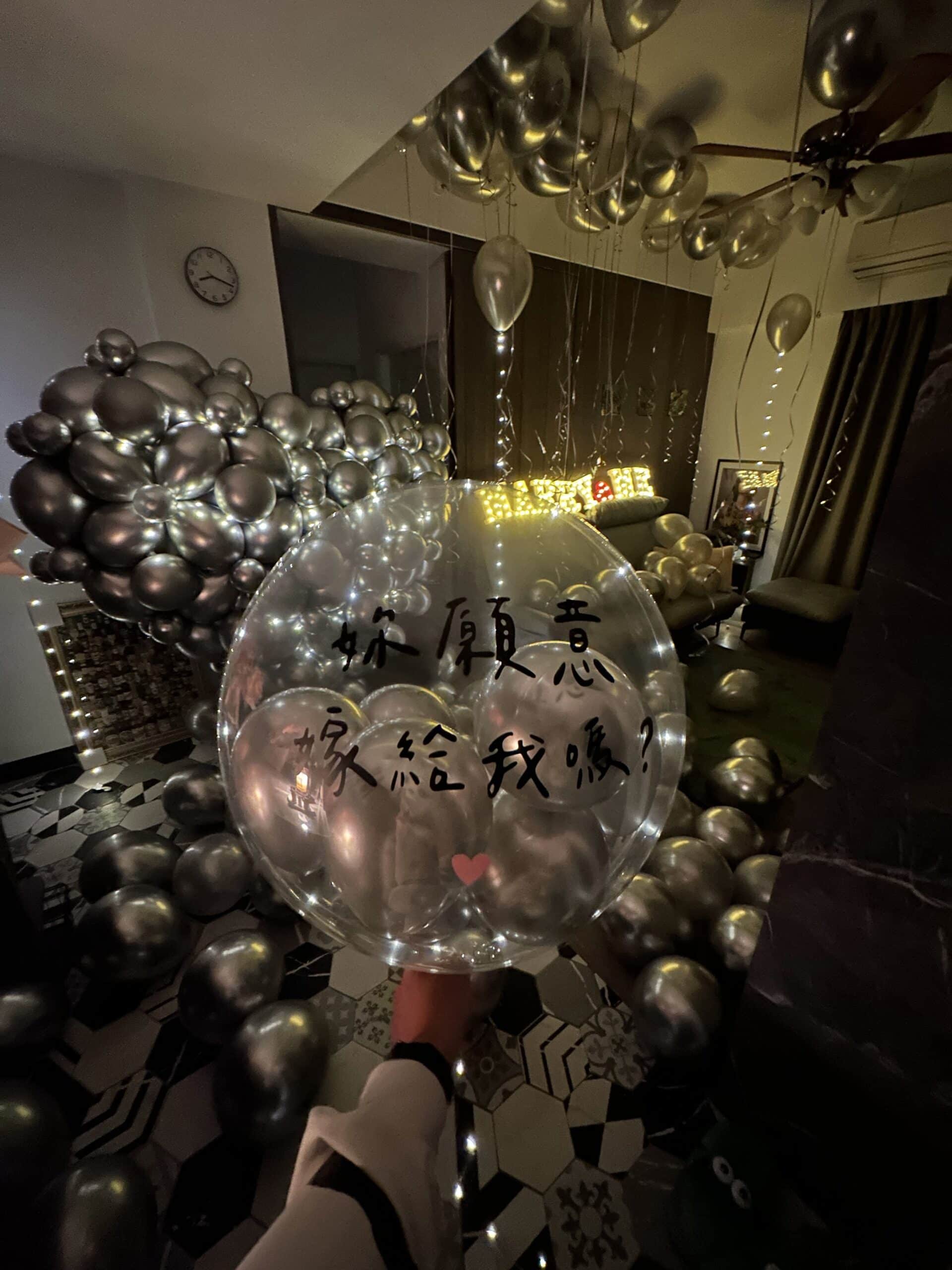 此銀色浪漫求婚氣球佈置內容包含